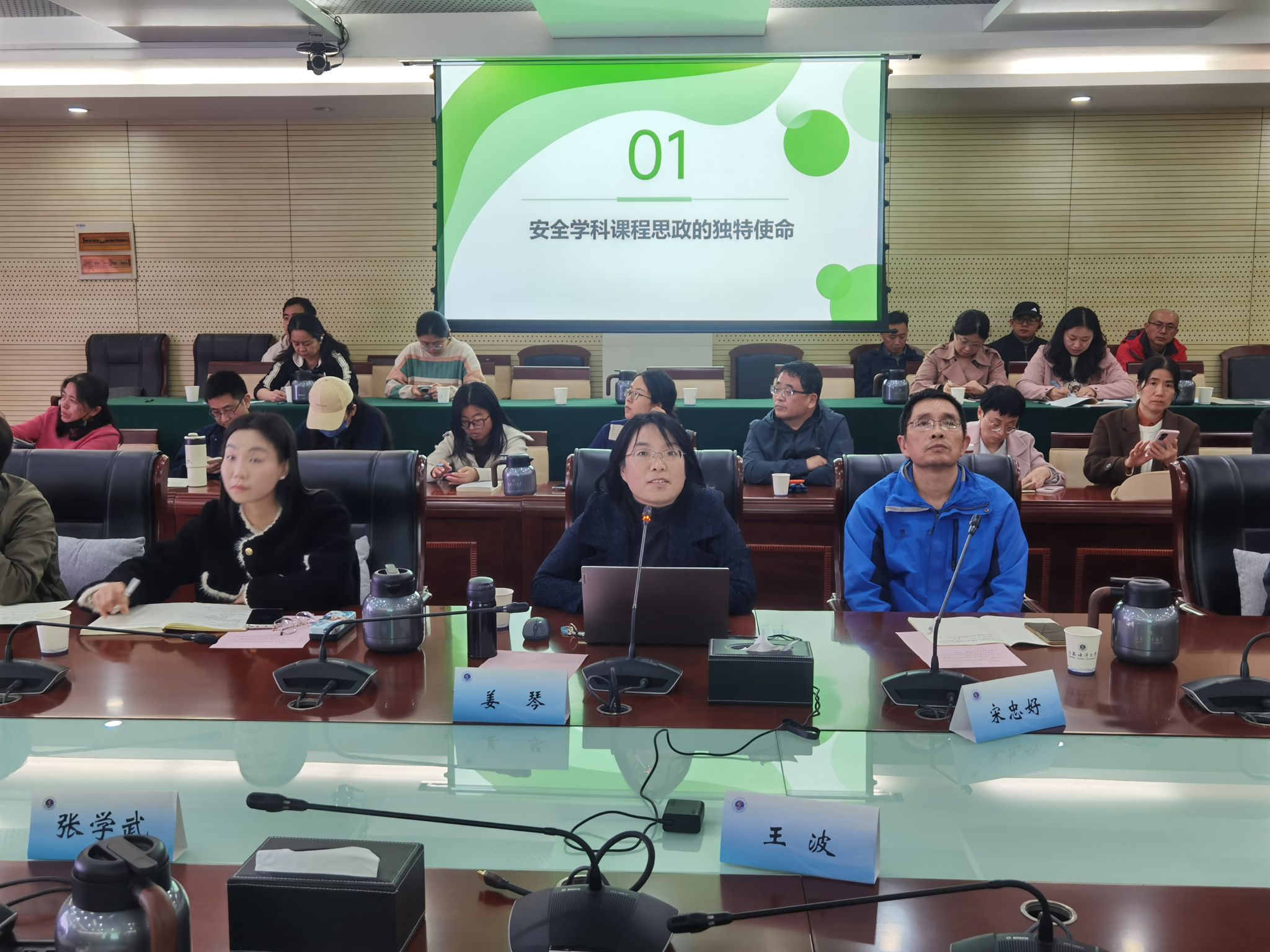 在案例分享环节,我院副教授宋忠好以“将专业元素融入思政课的教学体会”为题,分享了如何结合不同专业学生的特点与需求,巧妙地将专业背景、行业精神融入思政课教学,有效提升了思政课的针对性和吸引力。环境与化学工程学院副教授姜琴则从专业课教师的视角,以“安全学科课程思政的独特使命”为题,生动展示了如何在专业课程教学中挖掘思政元素,实现知识传授与价值引领的有机统一,提供了可借鉴的教学实践范例。
