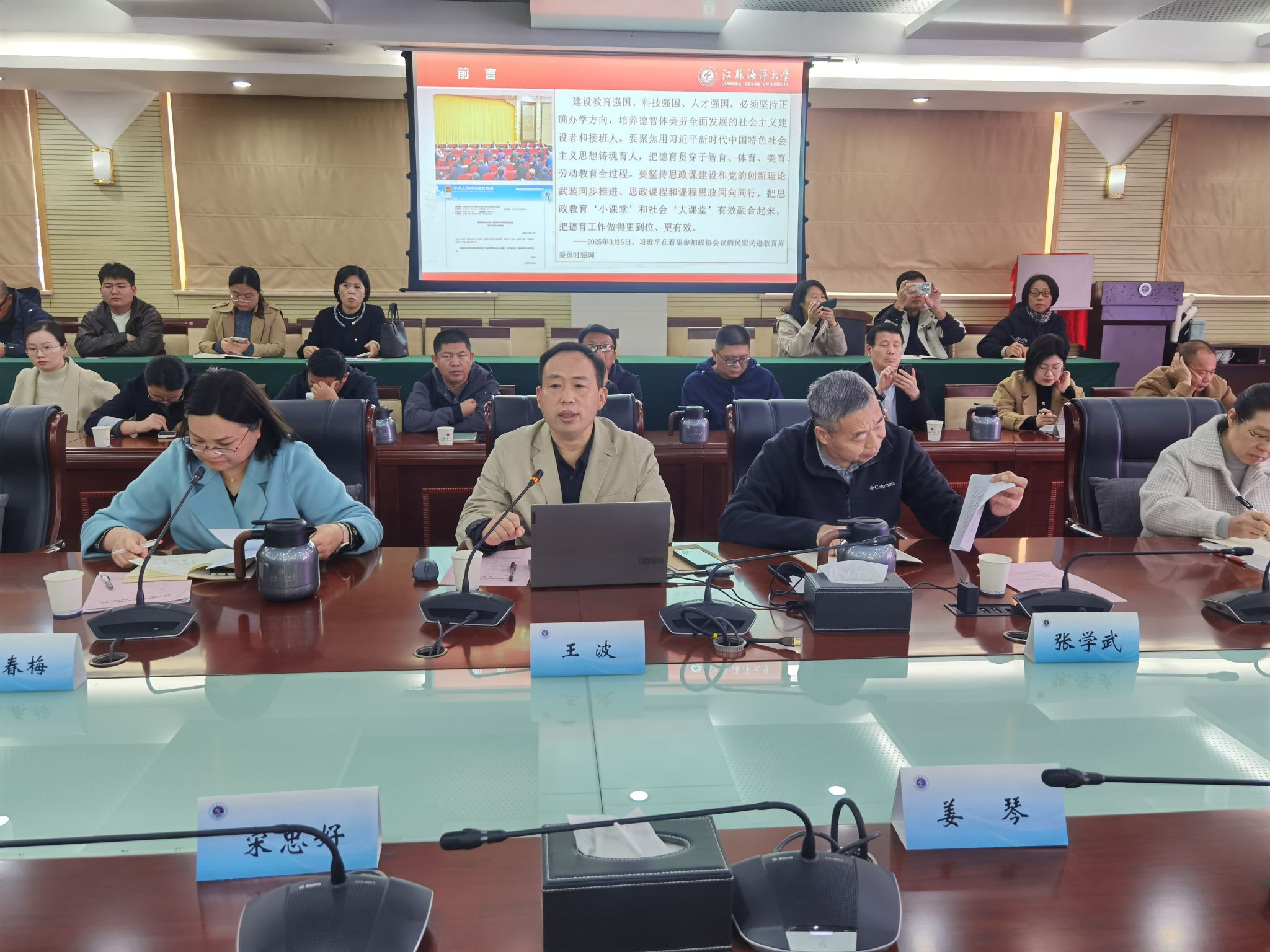 祝春水详细介绍了我校课程思政建设的整体规划、实施路径与阶段性成果。他系统梳理了学校在制度建设、项目推动、资源整合等方面所做的探索与努力,并展望了下一阶段深化课程思政改革的工作重点。