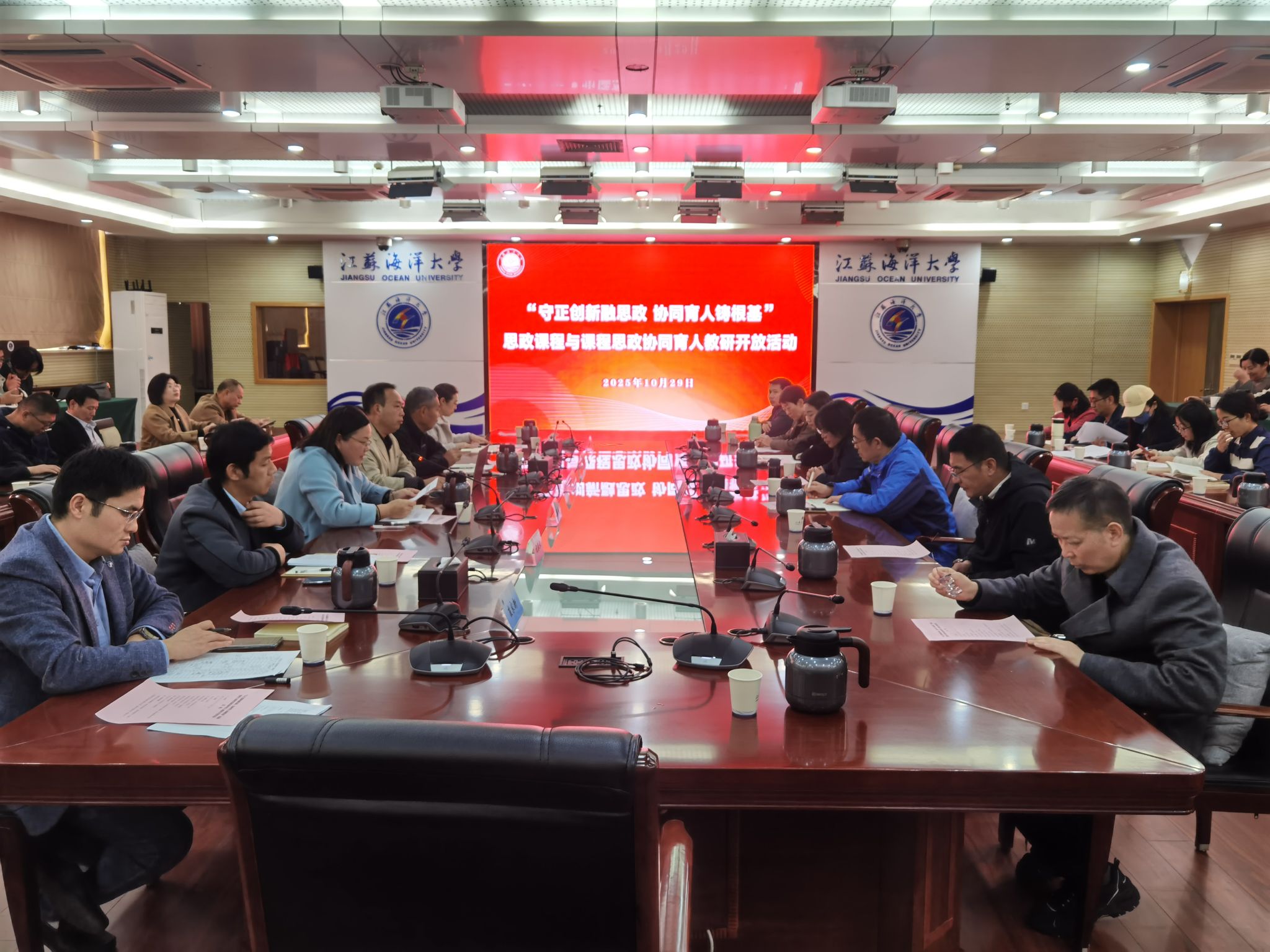 为深入贯彻落实立德树人根本任务,扎实推进思政课程与课程思政同向同行、协同育人,10月29日下午,“守正创新融思政,协同育人铸根基”思政课程与课程思政协同育人教研开放活动在会议中心东海厅举行。活动由我院具体承办,教师教学发展中心协办。校党委常委、党委宣传部部长王波,校教学督导组副组长张学武,我院院长沈春梅,教学质量管理处副处长燕姣云、教务处副处长祝春水,以及全校思政课教师、专业课程骨干教师、院系教学督导等共同参与了本次活动。活动由沈春梅主持。