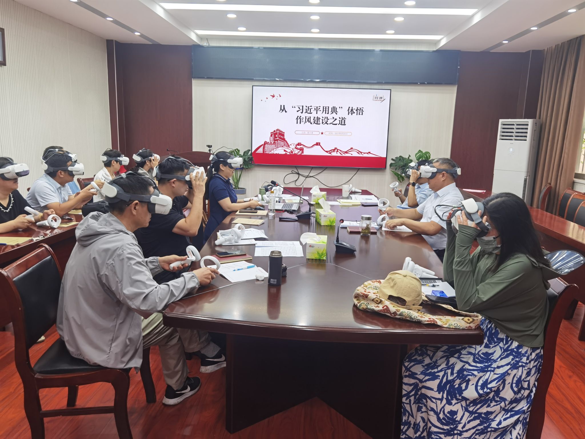 在VR互动体验式学习环节,大家手持操作手柄,佩戴VR眼镜,先后进入廉政馆、十八大以来党风廉政建设主要成就展、反面现身说法、党风廉政建设主要案例、历史名人家风家训等VR馆,依托先进的VR技术,融合视频、图片、 语音解说、宣讲等教育模式,通过视觉、听觉等全方位立体化运用,接受全方位、沉浸式、可互动的廉洁文化教育。